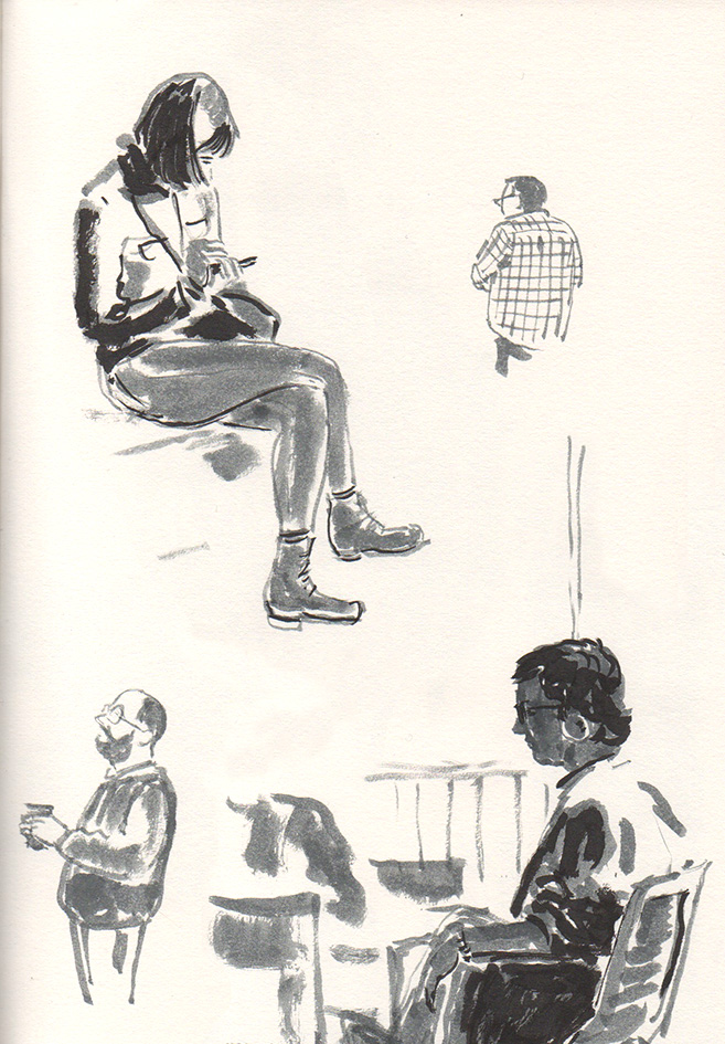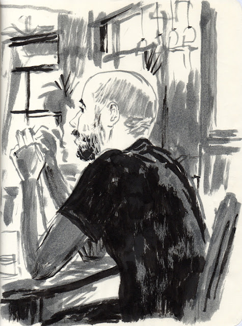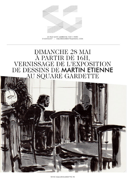 Dimanche prochain, j'exposerai quelques dessins tirés de mes carnets croquis au restaurant le Square Gardette. J’y serai à partir de 16h, jusqu’en début de soirée. Le restaurant se trouve au 24 rue St Ambroise dans le 11ème arrondissement (métro St Maur ou St Ambroise). En prime, SuperBravo (Armelle Pioline, chanteuse du groupe Holden) donnera un petit concert à 17h. Vous êtes les bienvenus.